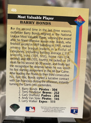 1993 Upper Deck Barry Bonds #486 Gold Hologram
