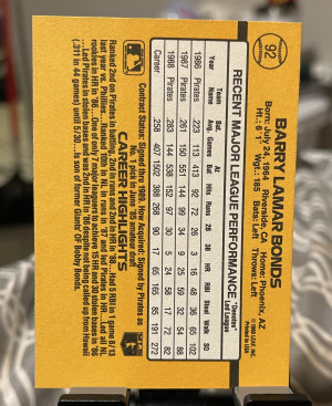 1989 Donruss Barry Bonds #92 *Denotes* Next To Performance