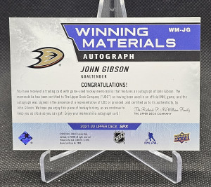 2021-22 SPx Winning Materials Autographs #WMJG John Gibson /99