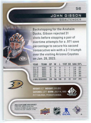 2022-23 SP Game Used #56 John Gibson Gold 99/111