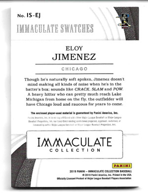2019 Immaculate Collection Immaculate Swatches #31 Eloy Jimenez - Chicago White Sox (#26/49)