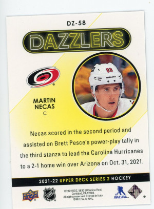 2021-22 Upper Deck #DZ-58 Martin Necas Dazzlers Purple