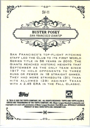 2025 Topps Allen & Ginter #SV-11 Buster Posey Sweet Victory