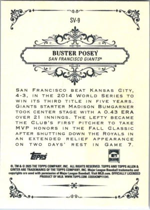 2025 Topps Allen & Ginter #SV-9 Buster Posey Sweet Victory