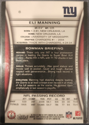 2008 Bowman Eli Manning Gold Boarder