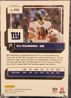 2022 Optic Eli Manning Silver Prizm