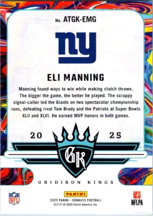 2025 Donruss #ATGK-EMG Eli Manning All-Time Gridiron Kings