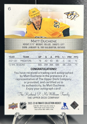 Matt Duchene, 2022-23 Ultimate, Autographed, /35