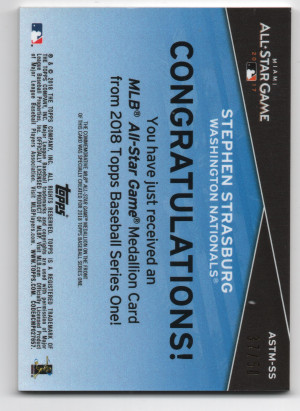 2018 Topps MLB All-Star Team Medallions Gold Parallel #ASTM-SS Stephen Strasburg /50