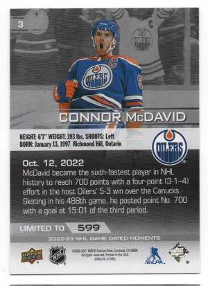 2022-23 Upper Deck Game Dated Moments #3 Connor McDavid - October 12, 2022 /599