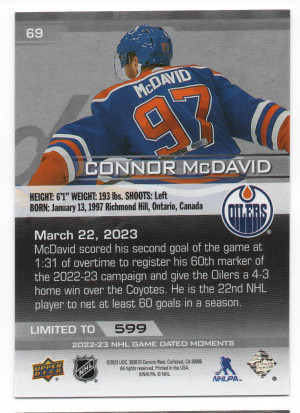 2022-23 Upper Deck Game Dated Moments #69 Connor McDavid - March 22, 2023 /599