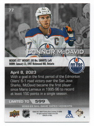 2022-23 Upper Deck Game Dated Moments #77 Connor McDavid - April 8, 2023 /599