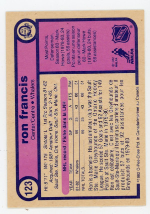 1982-83 O-Pee-Chee #123 Ron Francis Rookie Card