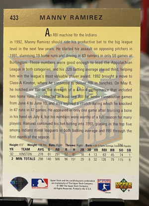 1993 Upper Deck Top Prospect Manny Ramirez #433 Gold Hologram (RC)