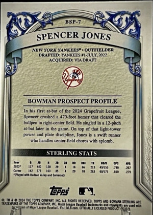 2024 Bowman Sterling Prospect Spencer Jones #BSP-7 (RC)
