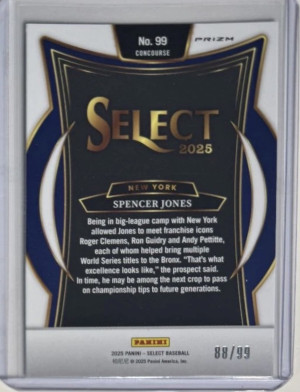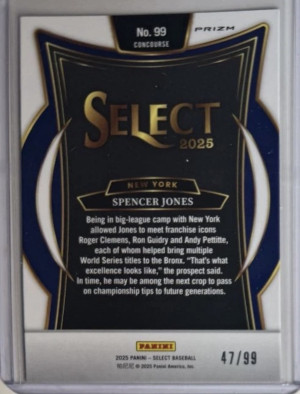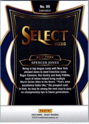 2025 Select Concourse White Prizm Spence Jones # 99 New York Yankees /99 (RC)