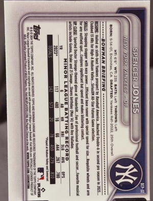 2023 Bowman Prospects Spencer Jones #BP-139 (RC)