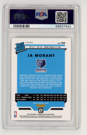 2019-20 Donruss Optic JA MORANT Rookie Card RC HOLO SILVER PRIZM #168 - PSA 9