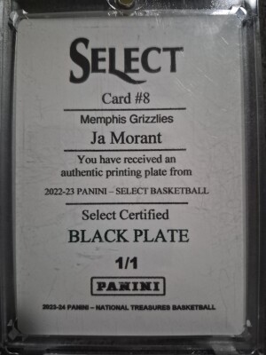 2023-24 Panini National Treasure Ja Morant Black Plate 1/1