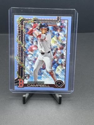 2025 Topps Holiday #H103 Kristian Campbell Light Blue & White Glitter Holiday