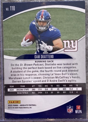 Cam Skattebo – RC2025 Panini Absolute FootballBY STORM InsertNew York Giants