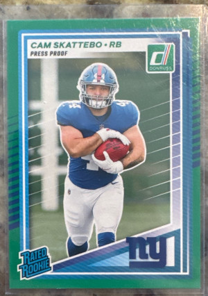 2025 Panini Donruss - Rated Rookie Cam Skattebo #302 Press Proof Green (RC)
