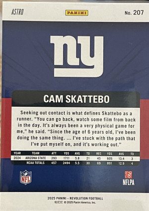 2025 Panini Revolution Astro Cam Skattebo #207 Rookie RC Color Match