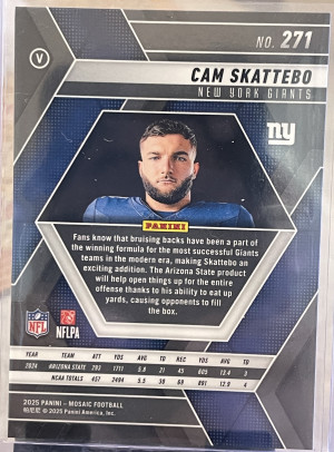 2025 Panini Mosaic Image Variation Cam Skattebo RC Rookie #271 Giants SP
