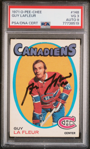 71/72 O-PEE-CHEE ROOKIE #148 GUY LAFLEUR SIGNED PSA 3/AUTO 9