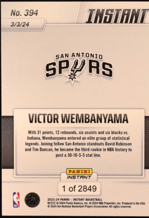 Victor Wembanyama 2023-24 Panini Instant #394 RC