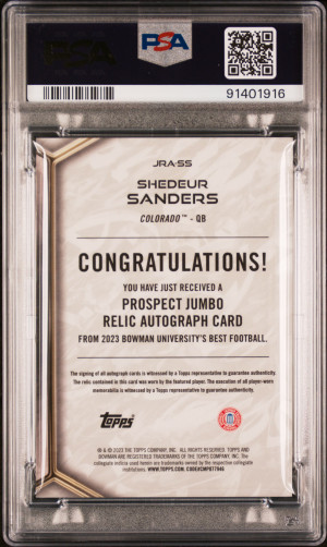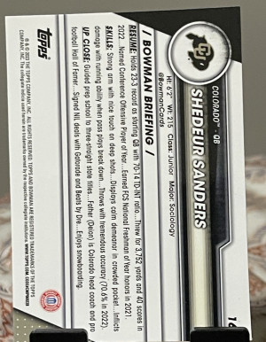 2023 Bowman University Best Prospect Jumbo Relic Autographs Shedeur Sanders Prospect Jumbo Rlc.au