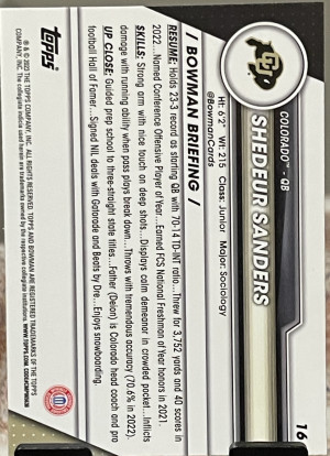 2023 Bowman UniversityChrome - ShedeurSanders #16 Refractor (RC)