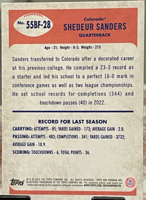 2023 Bowman University Chrome 1955 Bowman Football Shedeur Sanders #55BF-28 (RC) Refractor
