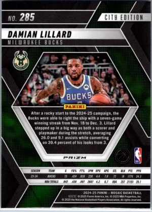 2024-25 Panini Mosaic #285 Damian Lillard Mosaic