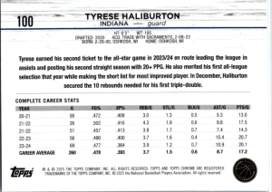 2024-25 Topps Chrome Sapphire #100 Tyrese Haliburton