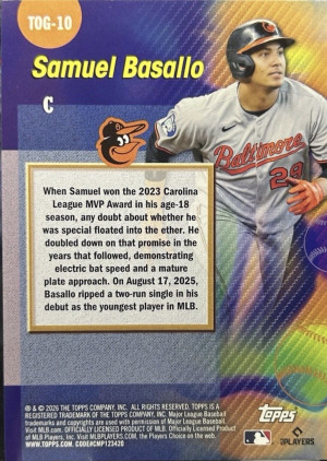 2026 Topps Series One Samuel Basallo RC #TOG-10 Titans Of The Game Orioles