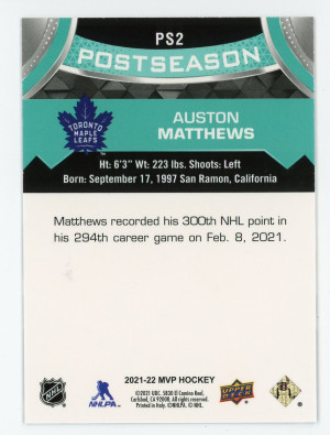 2021-22 Upper Deck MVP Postseason #PS2 Auston Matthews SP