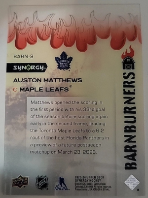 2023-24 Upper Deck Synergy Auston Matthews Barnburners Parallel Maple Leafs