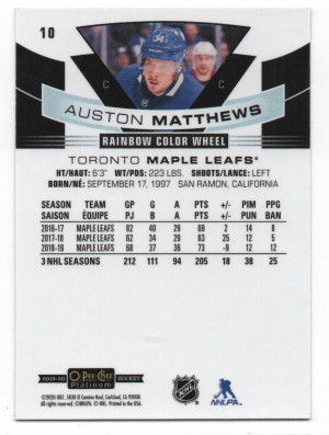 2019-20 O-Pee-Chee Platinum ePack Rainbow Color Wheel Parallel #10 Auston Matthews