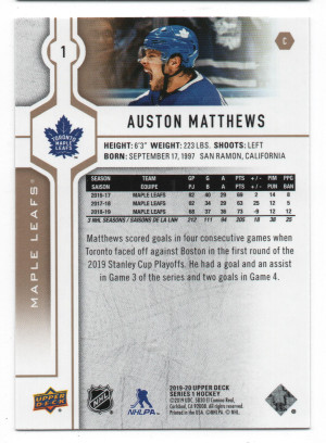2019-20 Upper Deck ePack Silver Foil Parallel #1 Auston Matthews
