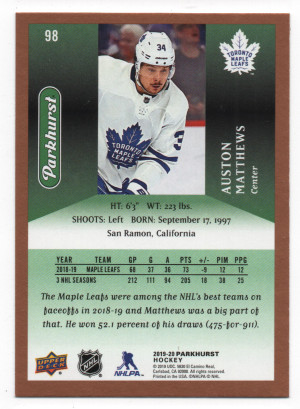 2019-20 Upper Deck Parkhurst ePack Bronze Parallel #98 Auston Matthews