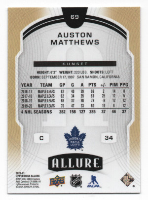 2020-21 Upper Deck Allure ePack Sunset Parallel #60 Auston Matthews