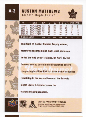 2021-22 Upper Deck Parkhurst ePack 2005-06 Retro Achievements #A-3 Auston Matthews