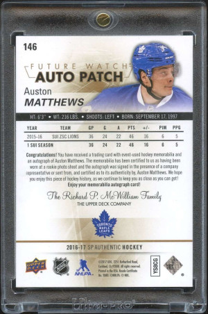 AUSTON MATTHEWS - 2016 SP Authentic Future Watch Auto Patch #146, /100