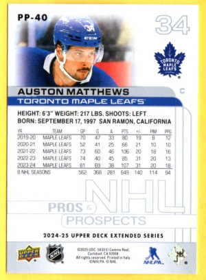 Auston Matthews #PP-40 2024 Upper Deck Pros and Prospects