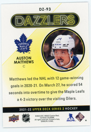 2021-22 Upper Deck Auston Matthews Dazzlers Purple