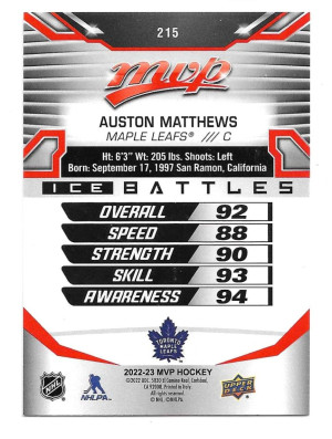 2022-23 Upper Deck MVP Ice Battles #215 Auston Matthews (SP) - Toronto Maple Leafs