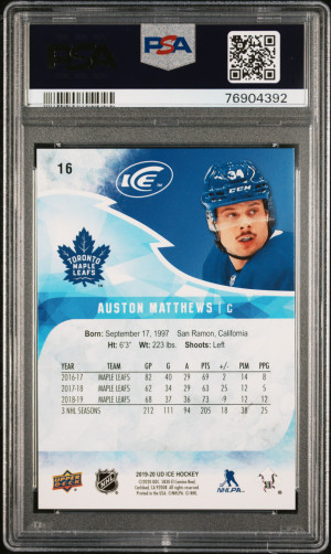 19/20 UPPER DECK ICE RED #16 AUSTON MATTHEWS (5/5) PSA 9