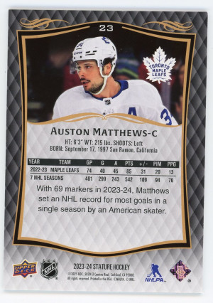 2023-24 Upper Deck Stature #23 Auston Matthews