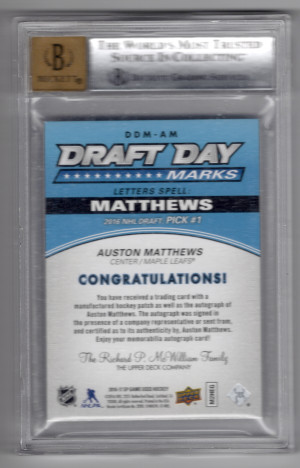 16/17 SP GAME USED DRAFT DAY MARKS "A" AUSTON MATTHEWS RC (05/10) BGS 9